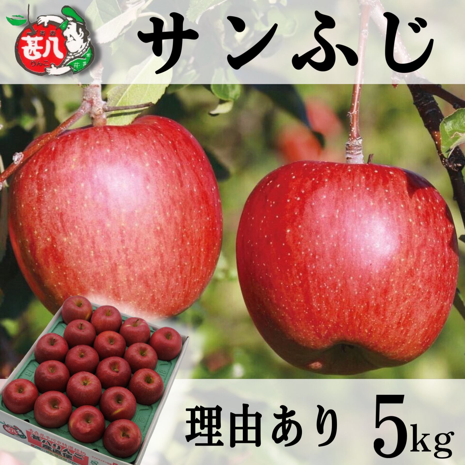 「サンふじ」⇒袋をかけずに、太陽の光をたくさん浴びて育ったふじ
