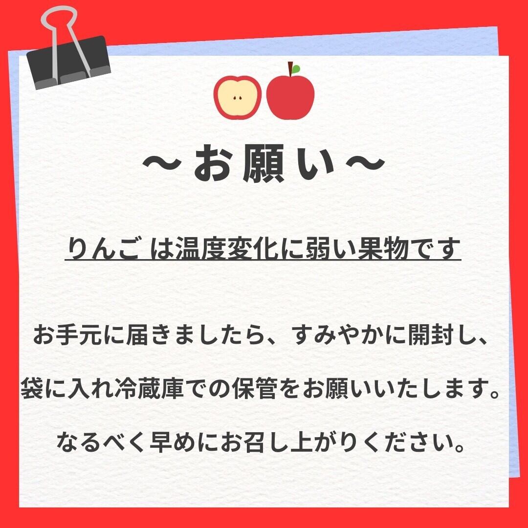 ※りんごは非常に温度変化に弱い果物です。お届け後は必ず冷蔵庫で保管し、できる限りお早めにお召し上がりくださいますようお願い致します。