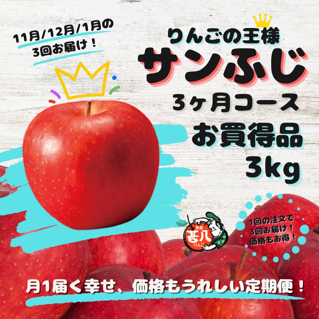 ※予約受付中※〝サンふじ3ヶ月コース〟【定期便(2月・3月・4月)】 《3kg》お買い得品