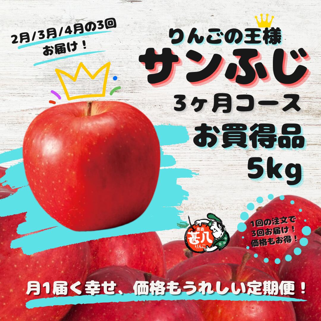 ※予約受付中※〝サンふじ3ヶ月コース〟【定期便(2月・3月・4月)】 《5kg》お買い得品