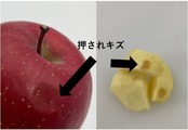 キズの種類で「押しキズ・押されキズ」と呼ばれる、りんごが何かに押されることによって、その箇所が少し凹んでいるものがございます。皮をむいていただくとわかりますが、色が少し変色しておりますので、その箇所は、皮を厚くむいてからお召し上がりください。